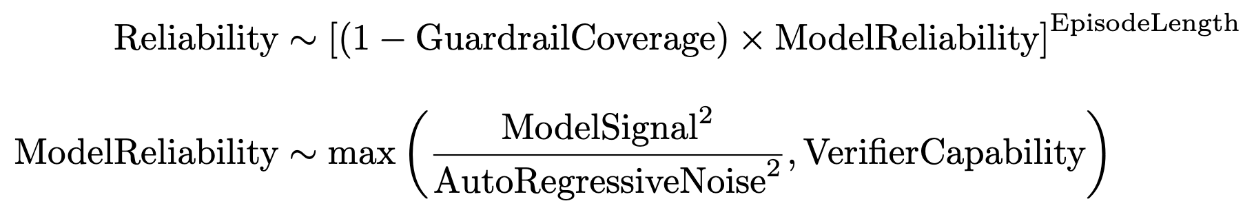 Training-time reliability is the under-explored frontier. Look back at that formula: Compositional Reliability attacks the exponent (episode length), Adaptive Reliability improves the max() term (verifier capability), and Intrinsic Reliability reduces the denominator (auto-regressive noise). All three matter. But only one compounds before you ship and that’s the one getting the least attention.